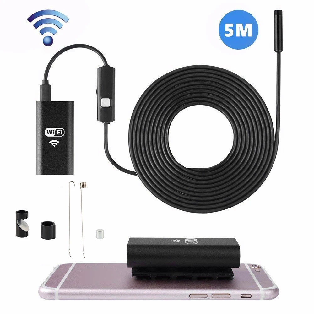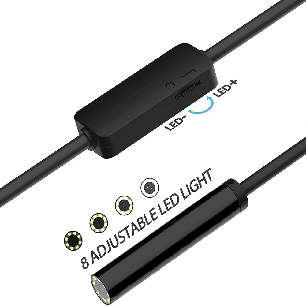 5M 8mm Endoscope Camera Flexible Wifi Borescope USB Endoscope Camera Waterproof Micro Inspection Camera with 8LED for Android PC