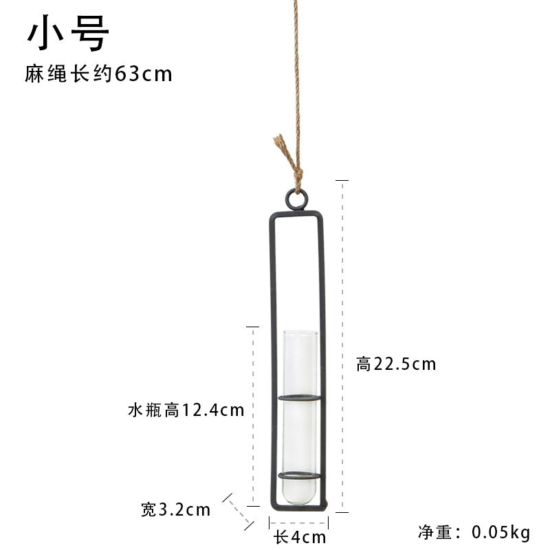 Creative wrought iron glass vase hemp rope pendant living room wall wall water culture green plant container hanging wall decoration