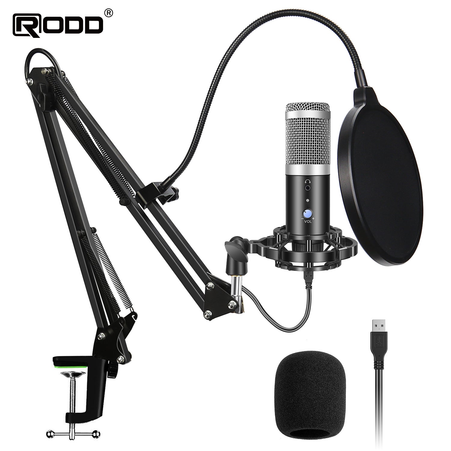 Cross-border exclusively for podcast recording with USB microphone set, with volume adjustment, real-time monitoring, plug-and-play, free drive