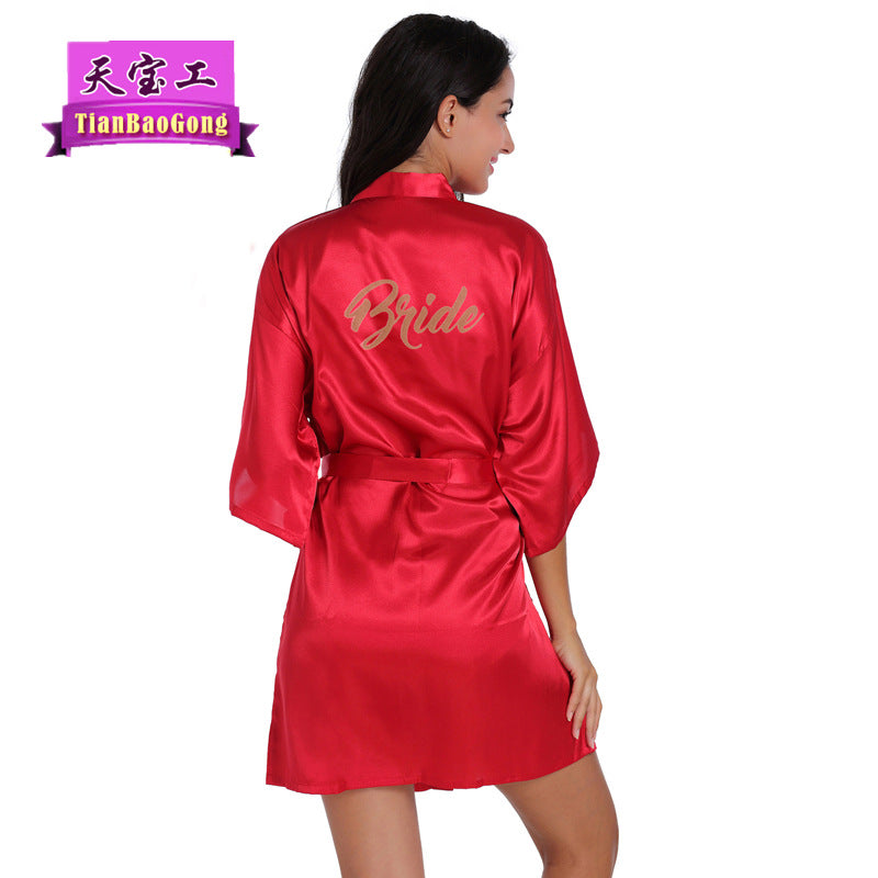 Cross-border Women's Wedding Makeup Gown Bronze Powder Nightgown Women's Summer Thin Cardigan Gown Bridal Robe