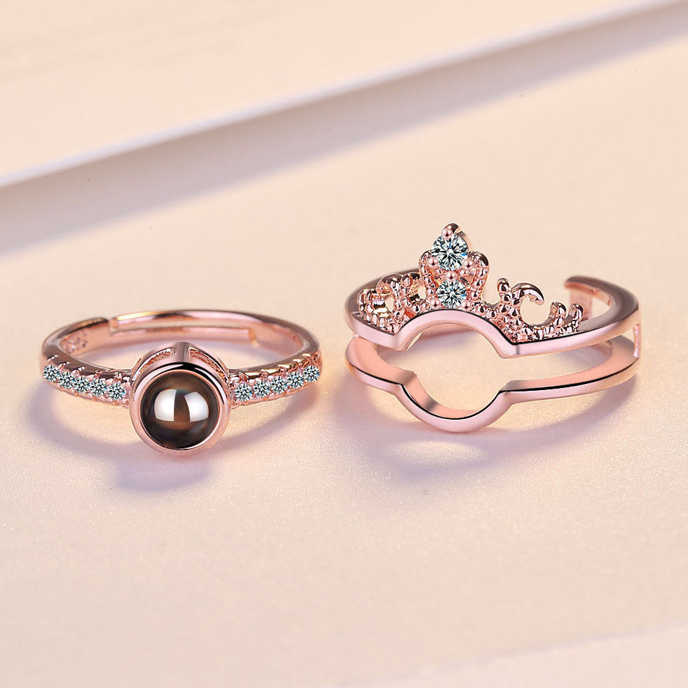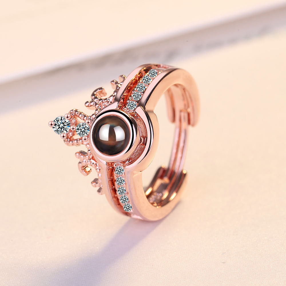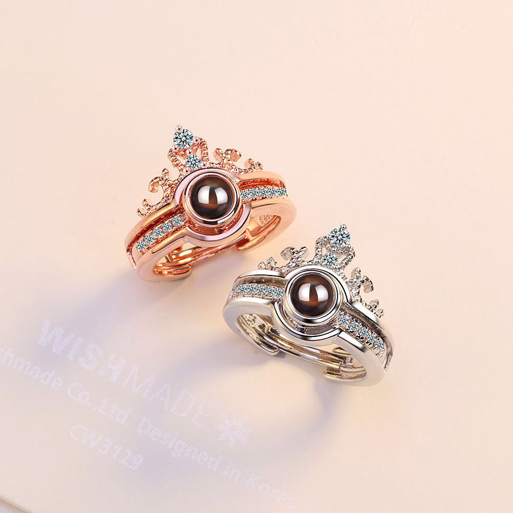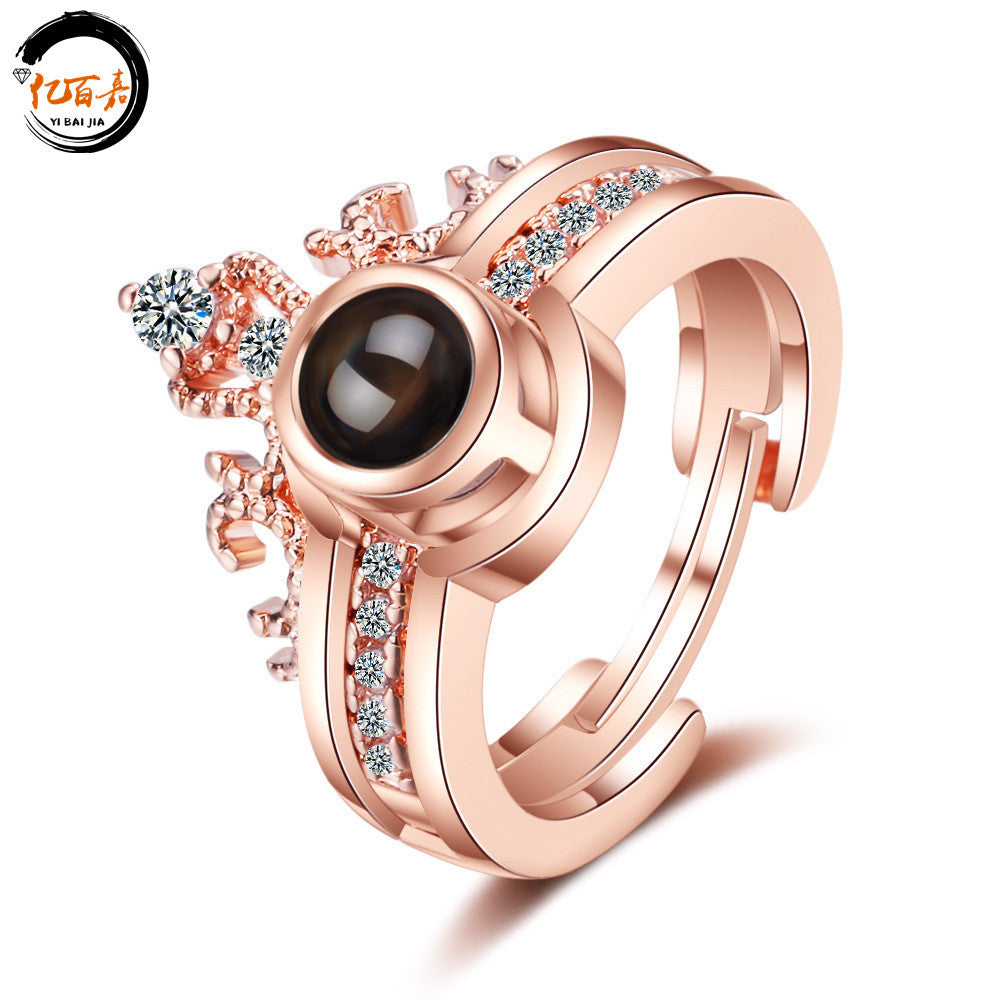 Crown two-in-one couple ring female opening net red vibrato 100 languages I love you projection ring
