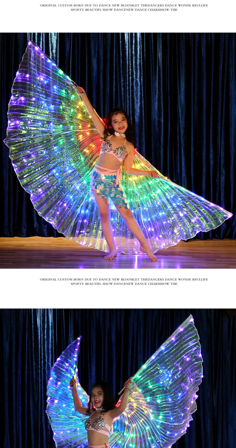 Dancer, children's color LED luminous wings, dance wings, belly dance, dance performance, fluorescent butterfly cape 7 #