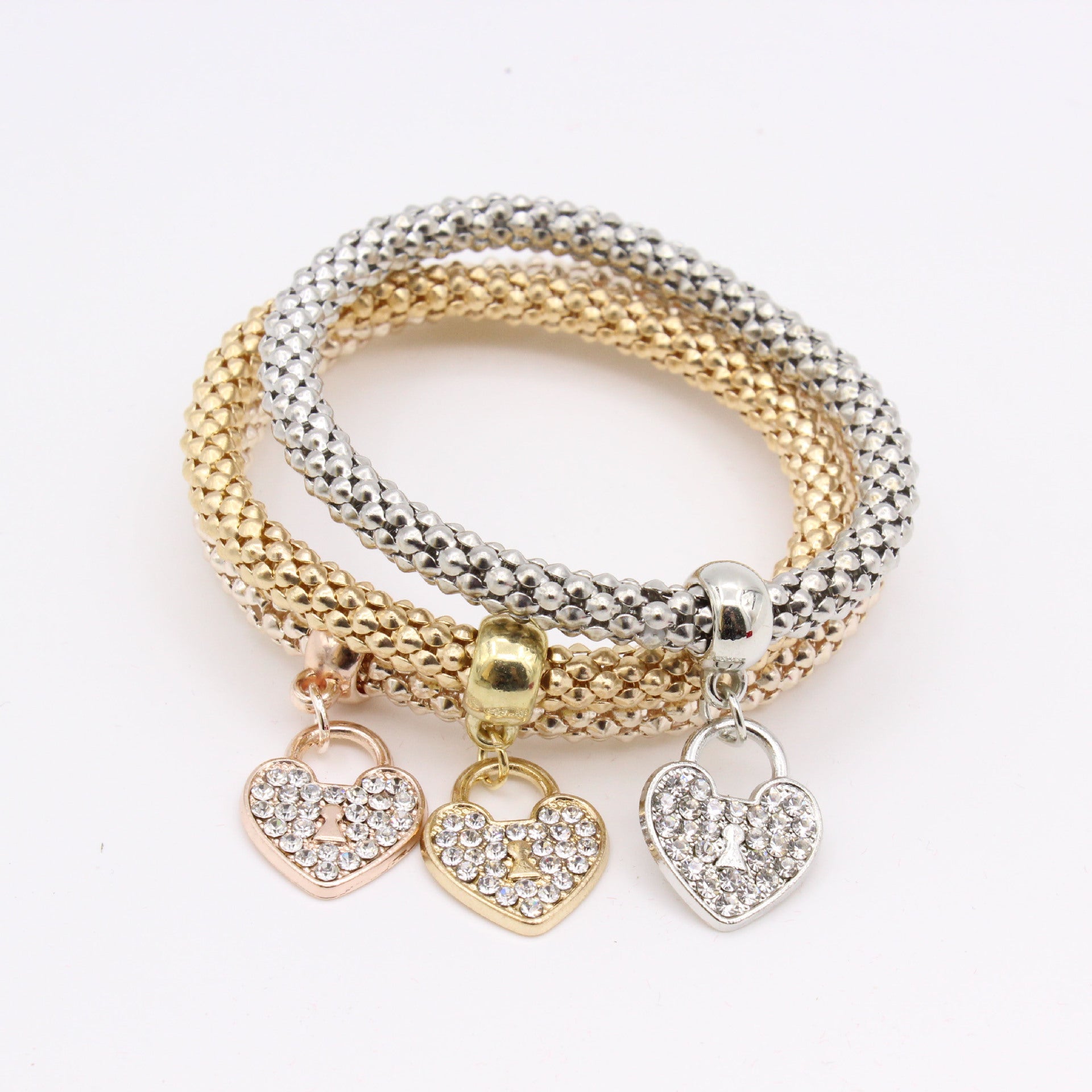 Factory direct European and American women's fashion trend inlaid rhinestone tricolor love personality elastic bracelet bracelet wholesale