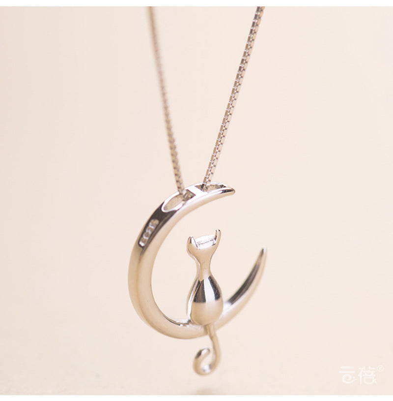 Fashion Cute Animal Cat Moon Pendant Necklace Charm Silver Gold Color Box Chain Necklace Kitten Pet Lucky Jewelry For Women Gift