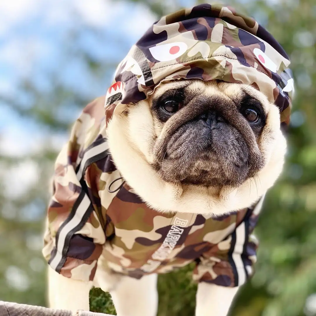 FATHIN Dog Clothes Adidog Camouflage French Bulldog Pupreme Shirt Dog Camo Windbreaker Sport Retro Dog Hoodies Pet Clothes