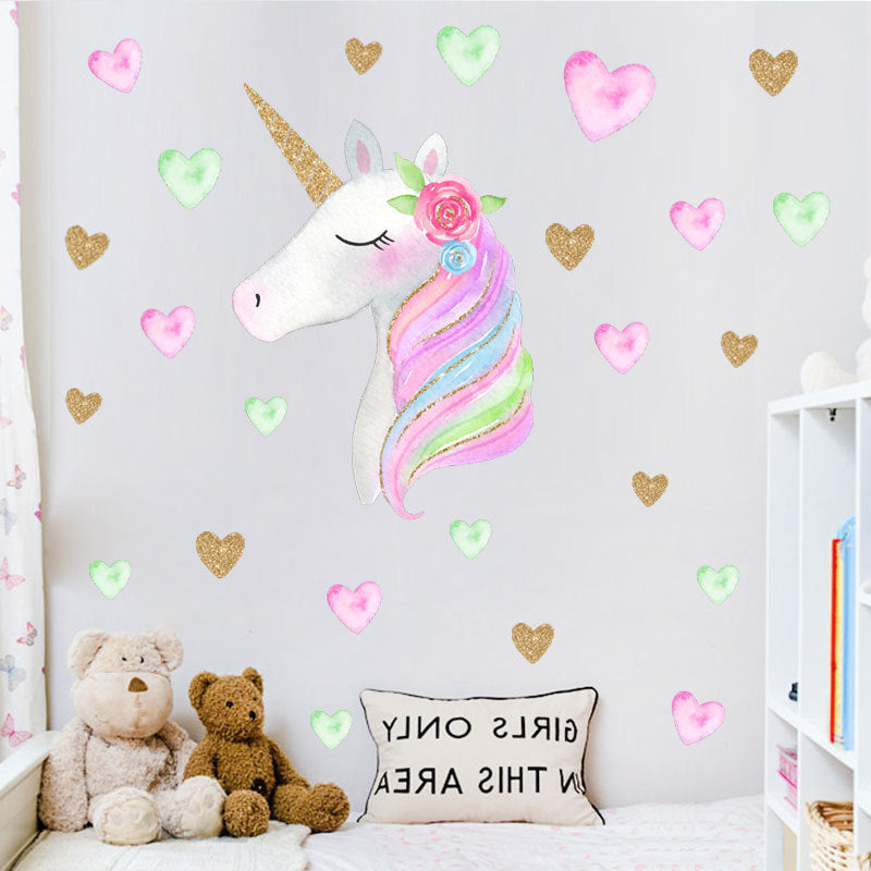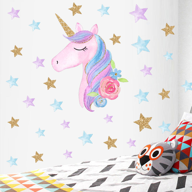 HOT Fantasy Unicorn Stars Rainbow Wall Sticker Girls Bedroom Wall Decal Art Decal DIY Nursery Home Decor