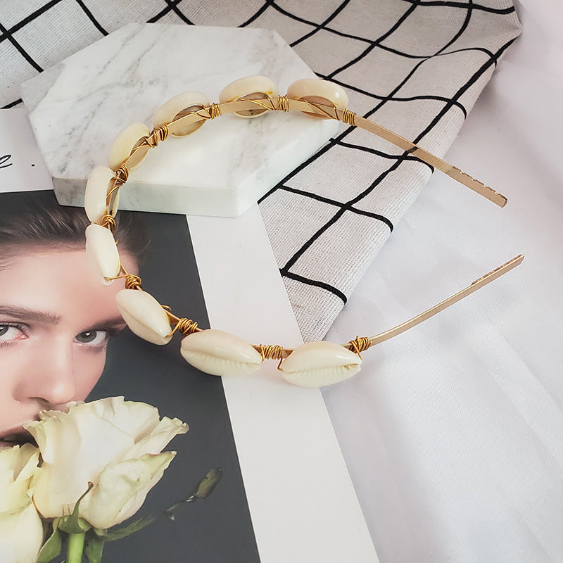 New high-end hair accessories headwear Korean shell headband Fashion European and American stone headband handmade hair accessories wholesale