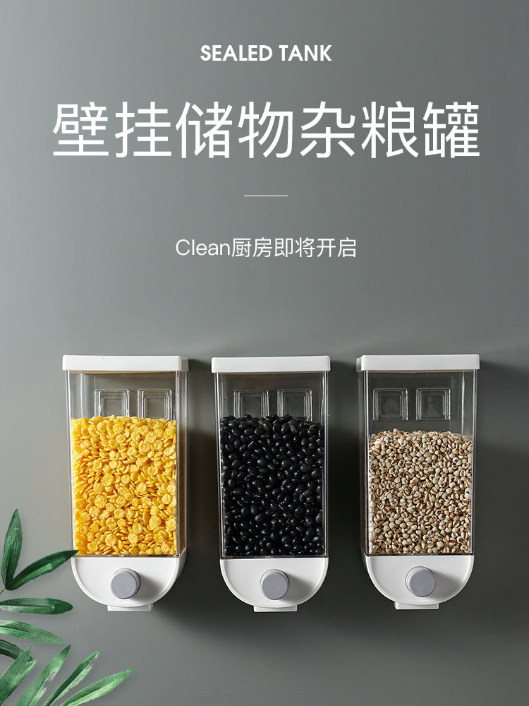 Push-type grain storage box household moisture-proof wall-mounted rice storage tank insect-proof plastic transparent sealed tank