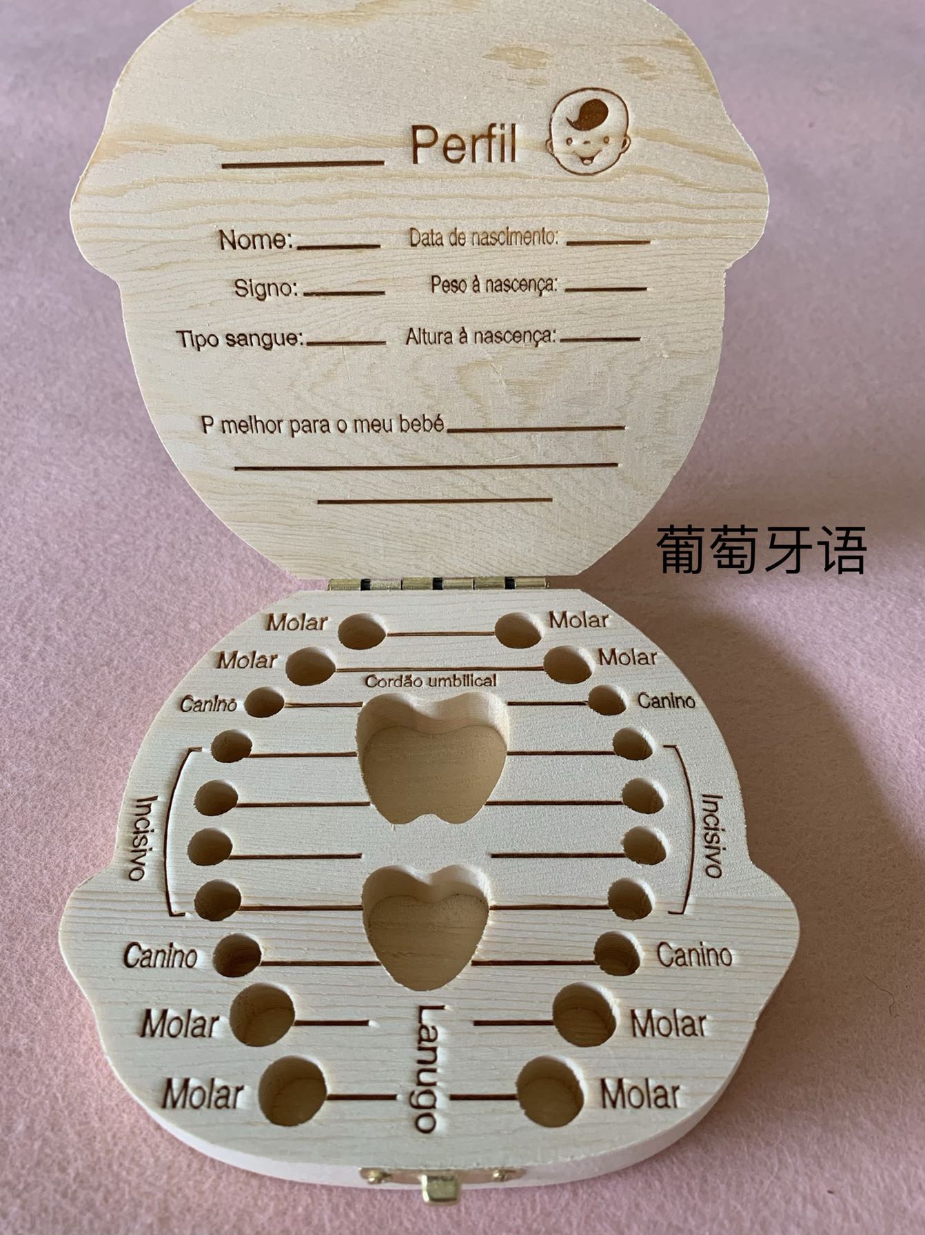 Spanish English Dutch Portugal French Russia Baby Wood Tooth Box Organizer Milk Teeth Storage Collect Teeth Umbilica Save Gifts