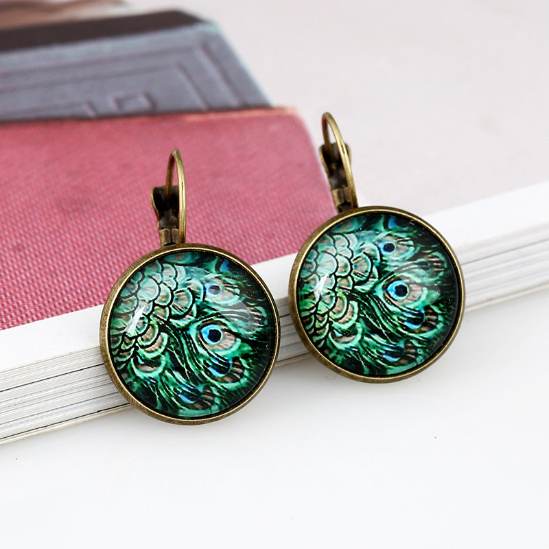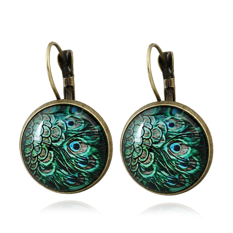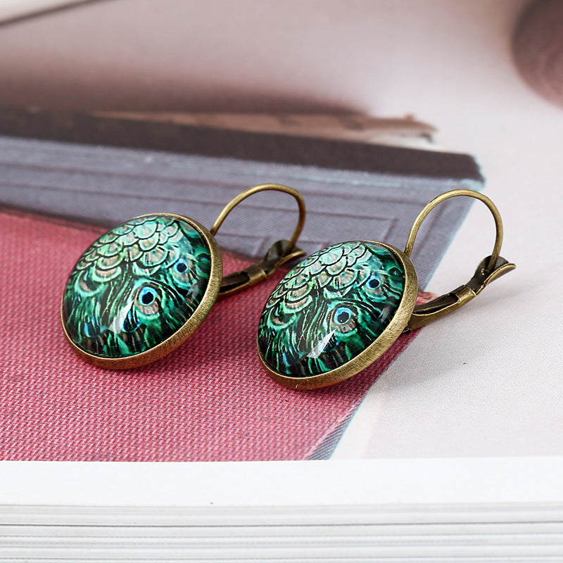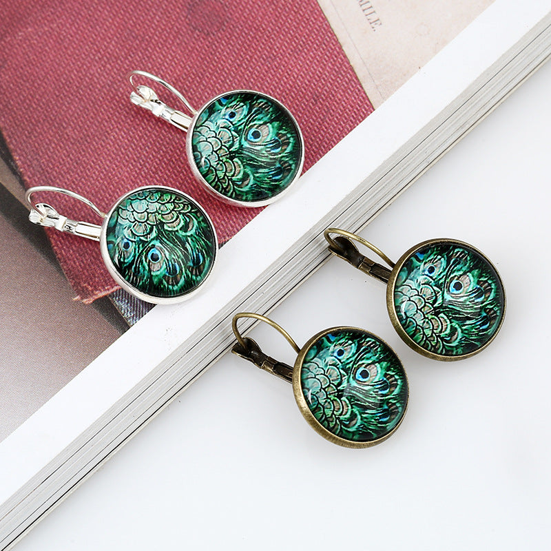 Spot Jewelry Earrings European Beauty Time Gemstone Vintage Feather Earrings AliExpress Explosion Earrings